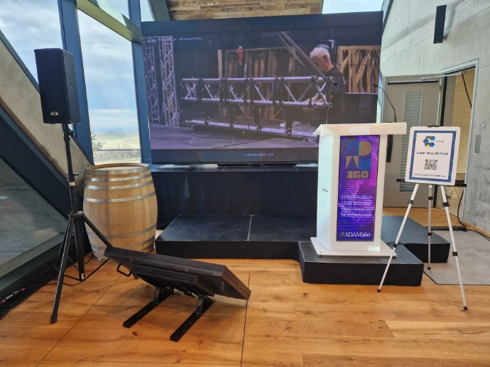Egyedi, csak nálunk elérhető pulpitus beépített LED kijelzővel, mely a központi vetítéssel szinkronban vezérelhető. Kültéri és beltéri verzióban több színben elérhető.
